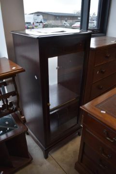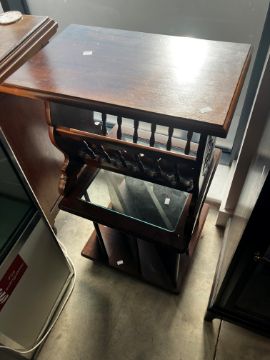 Three pieces of late 20th Century mahogany effect occasional furniture comprising hifi cabinet, record table and magazine rack/occasional table