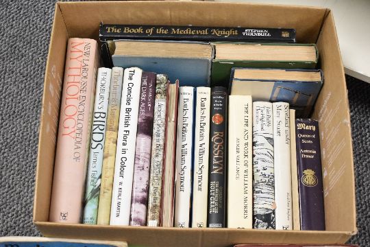 A selection of 20th-century books, with titles pertaining to Medieval History, Mary Queen of Scots, Mythology and more, (one box full), condition is consistent with age and use.