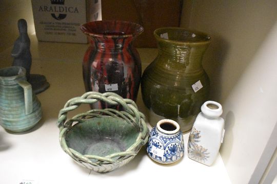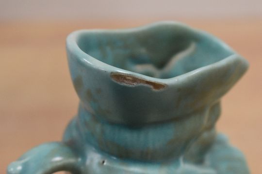 A quantity of early to mid 20th-century SylvaC-style pottery, to include a pair of 'The Shy Ducklings', approximately 20cm and 21cm in height; a small Toby jug; a selection of Art Deco Flaxman Ware Wadeheath pottery ceramic jugs, featuring distinct ribbed or wavy designs with an aqua green glaze and more, some marked to base but not all, (9), condition is consistent with age and use, no visible chips or cracks to most.