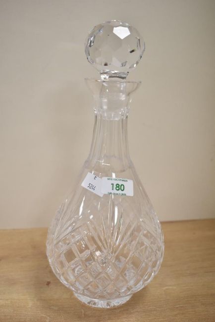 A set of 20th-century Irish Tyrone Crystal ware brandy balloon-style goblets with matching decanter, featuring a cut crystal design, etched to base, (6 glasses and 1 decanter), condition is consistent with age and use, no visible chips, cracks or fixed damage.