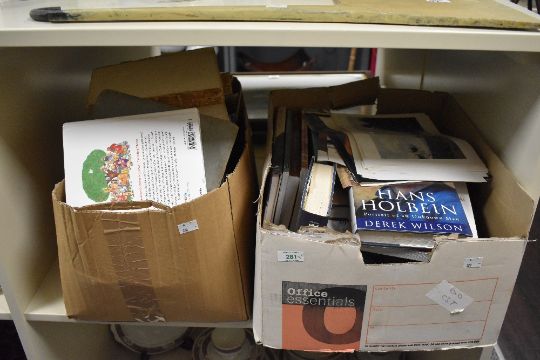 A large selection of 19th and 20th-century books, one box containing mainly titles relating to art and the other predominantly religion, (2 boxes), condition consistent with age and use, all sold as seen.