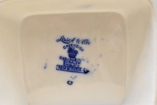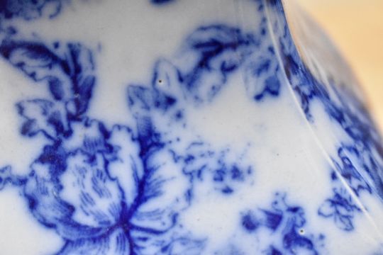 Two late 19th to early 20th-century Losol Ware Keeling and Company 'Cavendish' mantle vases, featuring blue and white floral transferware decoration, marked to base, 33cm, condition is consistent with age and use, visible areas of surface wear.