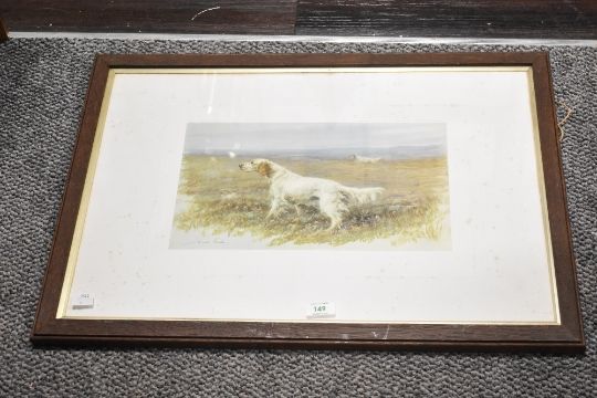 Two 20th-century framed prints, both to feature dogs; sold with an unframed charcoal sketch, (3), condition is consistent with age and use.