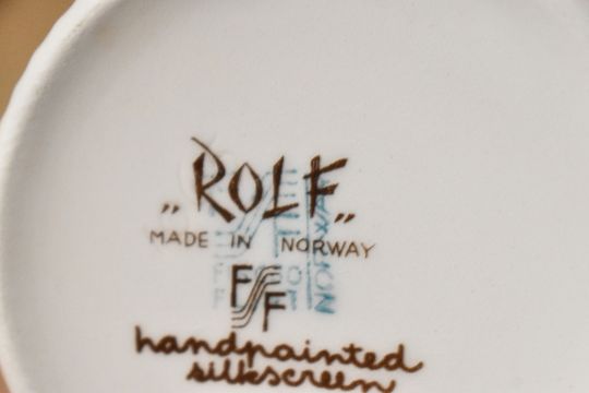 A vintage Scandinavian Figgjo Flint 'Rolf' coffee set, designed by Rolf Fryland, featuring repeating silk-screen patterns, to include coffee cups, saucers, sugar bowl and milk jug, all marked to the base, (14 pieces), condition consistent with age and use.