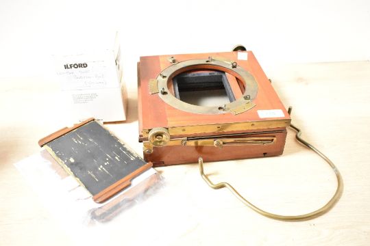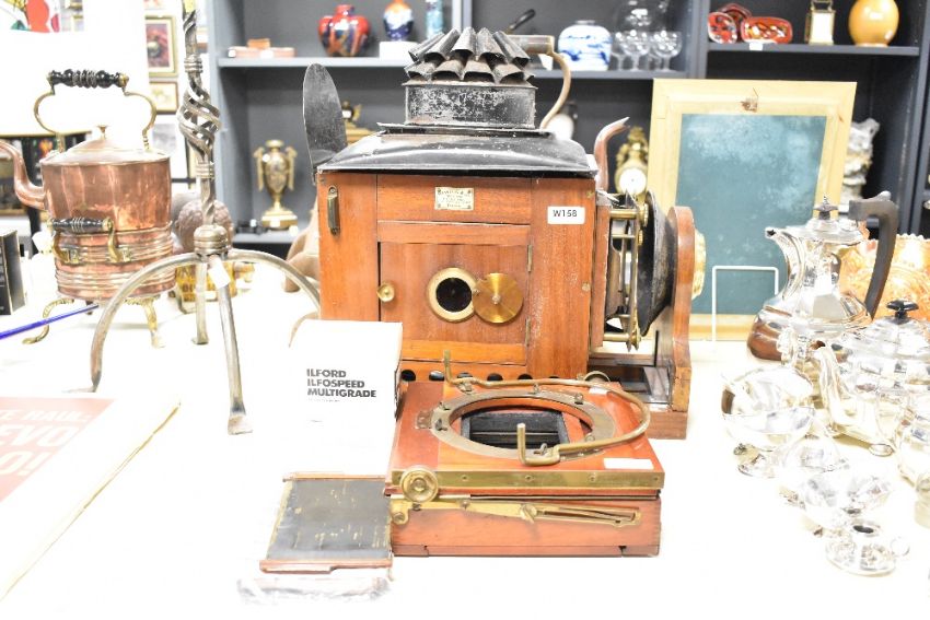 A late 19th early 20th century mahogany framed Newton & Co (Optitions to the King) Fleet Street London Magic lantern later converted to electric with spare bulb