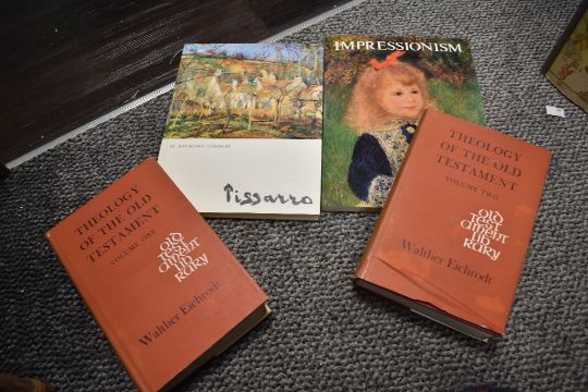 A large quantity of late 19th to 20th-century miscellaneous books, to include a selection of Art related titles, an amateur scrapbook of Art-related post cards and more, (2 boxes full), condition is consistent with age and use.
