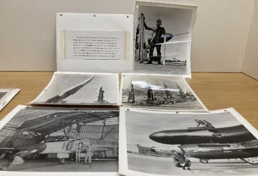 United States of America post-WW2 period collection of 20.5cm x 25.5cm photographs, 19no. relating to the North American Air Defense Command (NORAD) and its protection of USA and Canada from its Combat Operations Center and Headquarters in Colorado Springs, including NIKE and FALCON guided missiles, ADC F-102 'Delta Dagger' fighter-interceptor, Locheed F-104 'Starfighter' U.S. Navy YAGR converted WW2 Liberty ship, RCAF CF-105 Avro 'Arrow' supersonic interceptor and the FIRST atomic armed air-to-air rocket ever donated, fired by a NORAD Northrop F-89D above the Atomic Energy Commission, Nevada Test Site. All photos annotated in printout on the rear. Sold together with 5no. related photographs without annotations and 7no. 21.5cm x 28.5cm photographs relating to the Royal Air Force Canberra B2, WD932, manufactured by English Electric and sent to the United States Air Force to be used as a 'pattern' aircraft for the B57, which crashed in Maryland in 1951 with the loss of one of its two crew members, pencil annotation to one photo.(31) An interesting and collectable lot, worthy of further research.