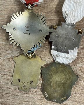 Masonic medals and/or jewels, hallmarked silver and enamel, 5no. various makers including Toye, Kenning & Spencer, George Kenning & Son and Spencer, Royal Masonic Institution for Boys, Royal Masonic Institution for Girls 1937, all three with Stewards pin bar, Grand Masters Body Guard and one Past Worshipful Master set square medal/jewel for Alfred Newton Lodge No.2686, engraved to reverse 'Presented to W.Bro. Sydney J. Davis as a mark of appreciation as W. M. 1973-74' and stamped TK&S, all with pin backs and on ribbons.(6)