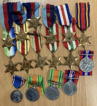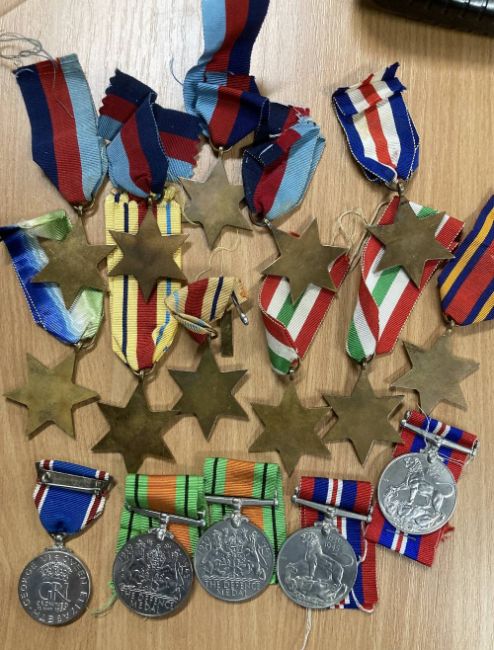 WW2 medals unnamed as issued with ribbons, comprising 4no. 1939-45 stars, one with rosette sewn to ribbon, 1no. Atlantic star, 2no. Italy stars, 2no. Africa stars, one with 8th Army clasp, 1no. Burma star, 2no. War medals, 2no. Defence medals.(16)