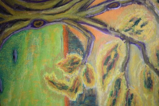A Contemporary oil on canvas, an expressionistic study of a tree, unsigned or attributed, unframed, 61cm x 61cm overall.