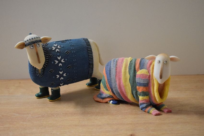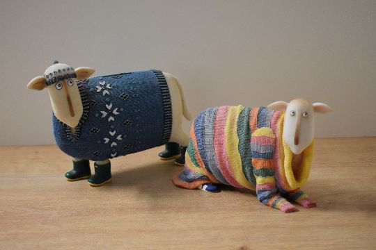 Two Border Fine Arts ' Ewe and Me' studies by Toni Goffe, model numbers A6846 and A7350.