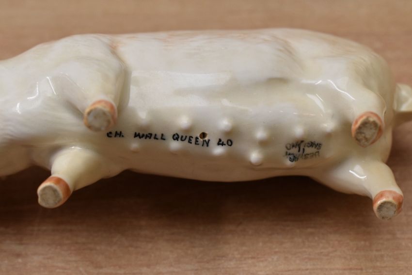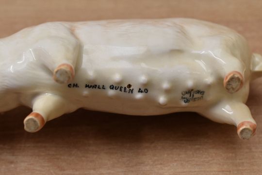 A Beswick Pottery Aberdeen Angus Cow study, model number 1563, designed by Arthur Gredington in black gloss finish sold alongside a Beswick Pottery SOW Ch. 'Wall Queen 40th', model number 1452A, also designed by Arthur Gredington in white gloss finish.
