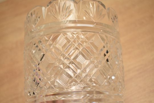 A 20th-century Waterford crystal cut vase, of fluted form, featuring a hand-cut pattern with a heavy star-cut base, etched to base, 20.5cm tall, condition is consistent with age and use, no visible chips, cracks or fixed damage, sold as seen.
