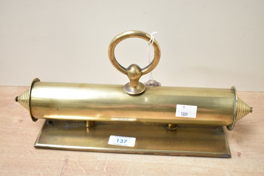 A presumed late 19th to early 20th-century brass solicitors office paperweight, of cylindrical shape, unmarked, 32cm in length, condition is consistent with age and use.