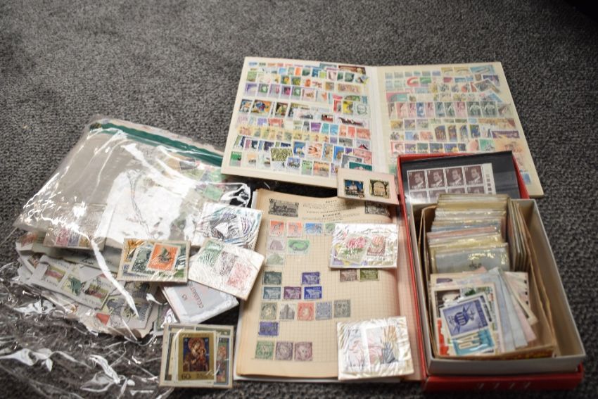 A large selection of 20th-century GB and Worldwide stamps, to feature a quantity of albums and loose, with two stamp collecting books, (1 shelf full), condition is consistent with age and use, all sold as seen.