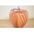 A large decorative contemporary studio art glass apple, featuring a vibrant pulled feather pattern of red, orange and white, and moulded stem and leaf decoration, unmarked, 20cm, condition is consistent with age and use, no visible cracks or chips, some areas of glue residue most likely from a previous sticker.