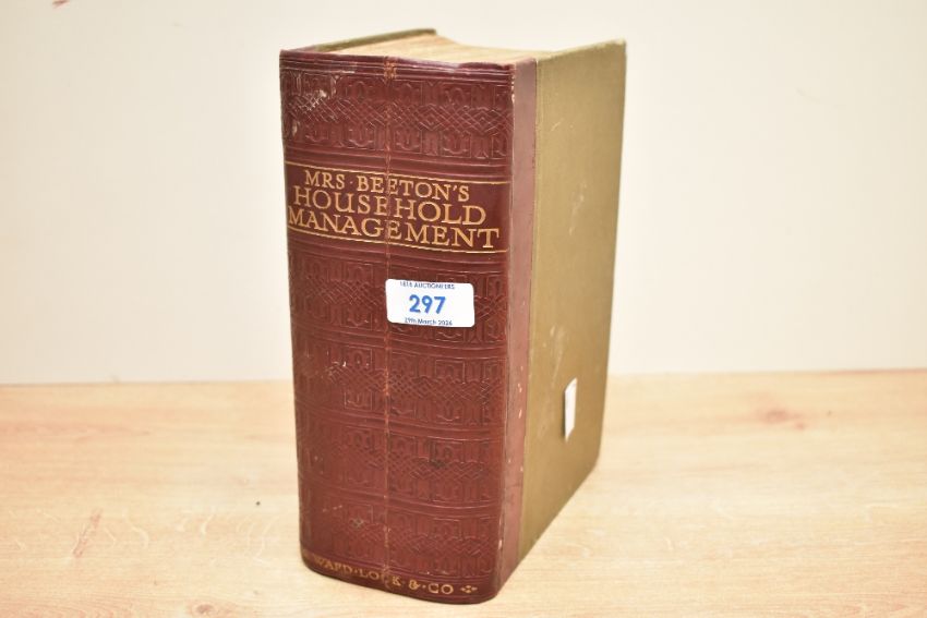 A large early 20th-century cloth bond copy of 'Mrs Beeton's Book of Household Management' published by Ward, Lock and Company, a comprehensive guide covering cookery, household duties and etiquettes of the time, marked to interior and cover, condition is consistent with age and use, having interior and exterior signs of degradation, sold as seen.