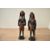Two 20th-century African Tribal Art hand carved hardwood Maasai female and male warrior statuettes, presumed Kenyan, being adorned with intricate beadwork, with the male figure holding a spear and the female a gourd, unmarked, both approximately 30cm in height, condition is consistent with age and use, visible natural wood variation with male figure most likely missing a shield.