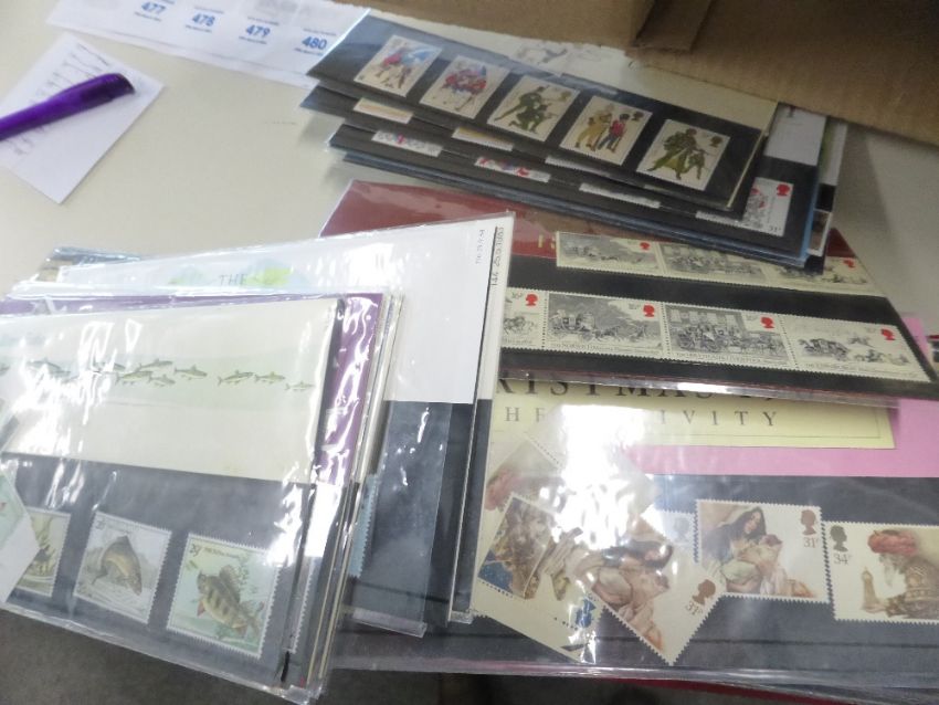 GB DECIMAL ACCUMULATION OF FDC's, PRESENTATION PACKS, YEAR PACKS & ACCESSORIES Box with accumulation of 4 volumes of first day covers, year packs to mid 1980's (run from 1977-86), further presentation packs for same era cigar box of accessories and packets of stamps, couple of folders of world material and a couple of hundred or so PHQ cards. Plenty here to keep you busy!
