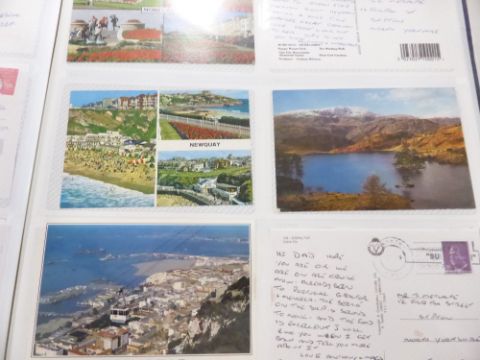 POSTCARDS: 1910's ONWARDS COLLECTION IN 2 ALBUMS WITH APX 240 CARDS Two postcards albums one with apx 90 cards, much if not all George V era including humour topographical, Blackpool of note IOM, Scotland other Northern Seaside Towns etc. Second album with a more modern collection of cards numbering 150+ including Hong Kong other overseas and GB material. Cards largely 1960's onwards.