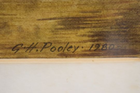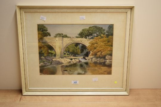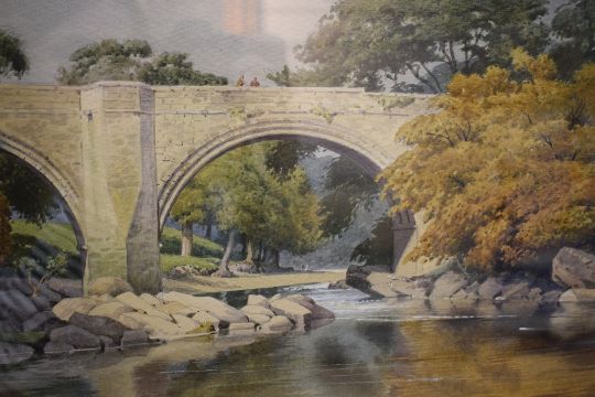 *Local Interest* Geoffrey H Pooley (British 1908-2006) Watercolour, Devil's Bridge Kirkby Lonsdale in Autumn, signed and dated (1980) lower right, within card mount and moulded white frame, under glass 35cm x 25cm & 53.5cm x 44.5cm overall.
