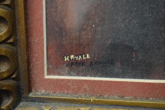 After Pierre-Auguste Renoir (French 1841 - 1919) Oil on board 'Head of a Young Woman (Yellow Hat)', signed lower left by artist 'H Ryall' and noted 'After Renoir', within card mount and moulded gilt frame, under glass 36cm x 45cm & 60cm x 69cm overall.