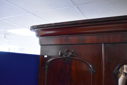 A Victorian mahogany triple wardrobe/linen press , having central mirror door, dimensions approx. H207 W180cm