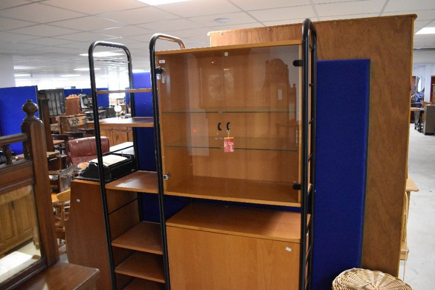 An Ikea 'Niklas' modular shelving unit, similar to Ladderax , comprising shelves, glazed and cupboard section, dimensions approx. H202 W130 D43cm