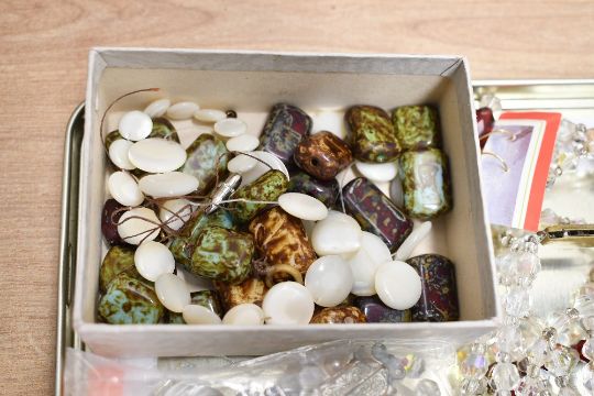 An assortment of costume jewellery, including a semi-precious chips necklace, faux pearls and clear beads