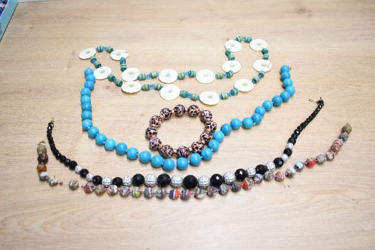 An assortment of costume jewellery, including a semi-precious stone bracelet, statement pieces and glass beaded necklaces