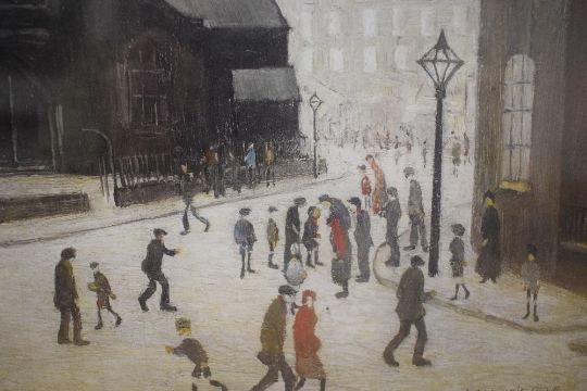 After Laurence Stephen Lowry (British 1887-1976) Lithograph 'A Street Scene, St. Simon's Church', within card mount and metallic frame, under glass 25.5cm x 28cm & 39.5cm x 42cm overall.