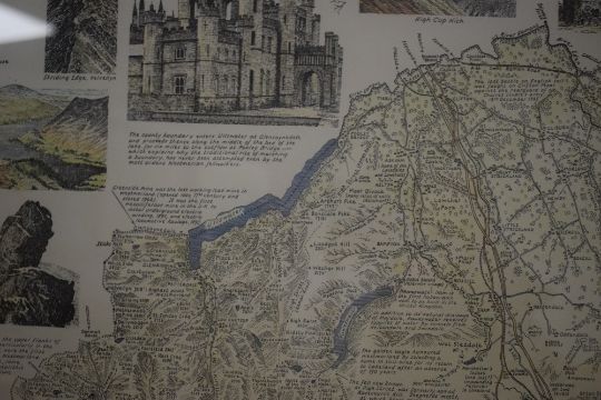 *Local Interest* After Alfred Wainwright (British 1907 - 1991) 'A Map of the County of Westmorland' a detailed study of the Historic county in Wainwright's signature style 'as it was on the 31st day of March in the year of our lord 1974 before being combined with the Counties of Cumberland, Lancashire North of the Sands and part of the West Riding of Yorkshire in accordance with the provisions of The Local Government Act 1972', within moulded gilt frame, under glass 60.5cm x 52.5cm & 64.5cm x 56.5cm overall.