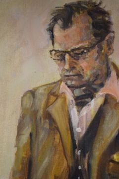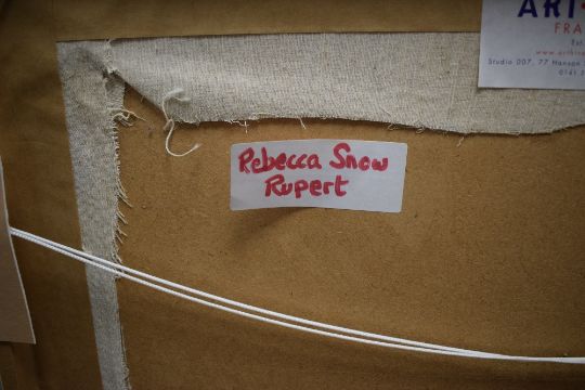 Rebecca Snow (British Contemporary) Impressionistic oil on board 'Rupert', a study of a seated gentleman reading, signed lower right, entitled and attributed verso, within cream wooden frame, 59.5cm x 84cm & 63.5cm x 87.5cm overall.