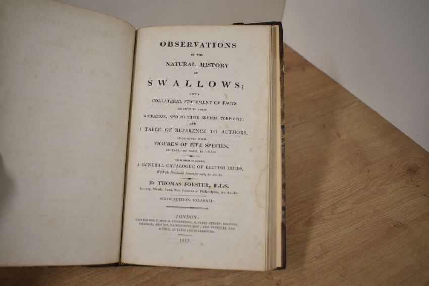 Antiquarian. Ornithology. Forster, Thomas - Observations on the Natural History of Swallows; &c. London: Printed for T. & G. Underwood, 1817. Sixth edition. Illustrated. Contemporary marbled boards, later calf re-back. (1)