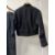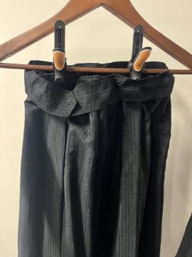 Two Victorian or Edwardian garments comprising a short wool jacket with decorative cording detail at the cuffs and black wooden buttons, and a floor length A-line skirt in ribbed or striped taffeta, covered eyelet button detail, covered waistband with hook and eyelet fastenings, size S, in fine antique condition.