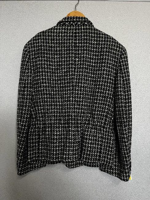 A 1980s vintage Comme Des Garcons oversides blazer jacket in black and white tweed Dupplin or double windowpane plaid, labels reads size S.