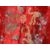 A vintage Chinese woven silk panel by Hang Znuo Silk, in vibrant crimson, with machine embroidery depicting a gold dragon, two pheonix, with orange, green and pink blossoms, and lanterns, measures 51 x 70 inches, in lovely condition with no repairs or damages.