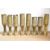 Three pairs of World War I French brass 75DEC trench art shell cases, each embossed and hand hammered with foliate designs over compressed and fluted base sections, sold along with two near matching cases, tallest 34.5cm
