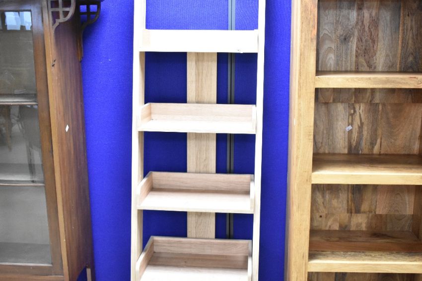 A modern laminate waterfall style bookshelf, height approx. 180cm