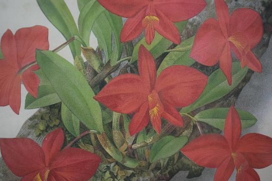 A collection of four modern lithographic prints, each a botanical plate study, entitled to centre, within card mounts and moulded gilt frames, under glass 20.5cm x 28.5cm & 27cm x 37cm overall.