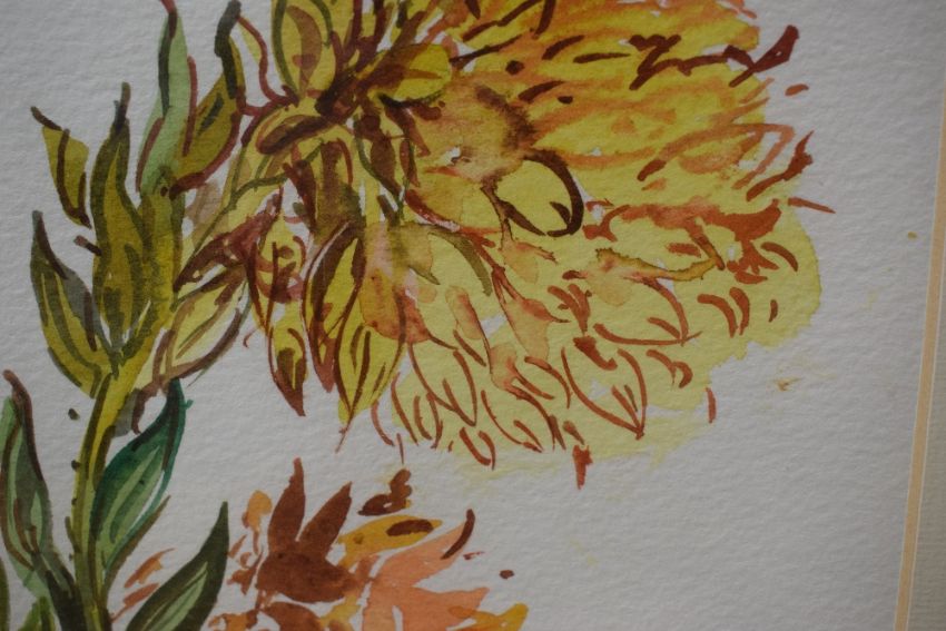 A pair of contemporary mixed media floral studies, entitled and attributed indistinctly lower right, within washline card mounts and gilt frames, under glass 12.5cm x 17cm & 24.5cm x 29.5cm overall.