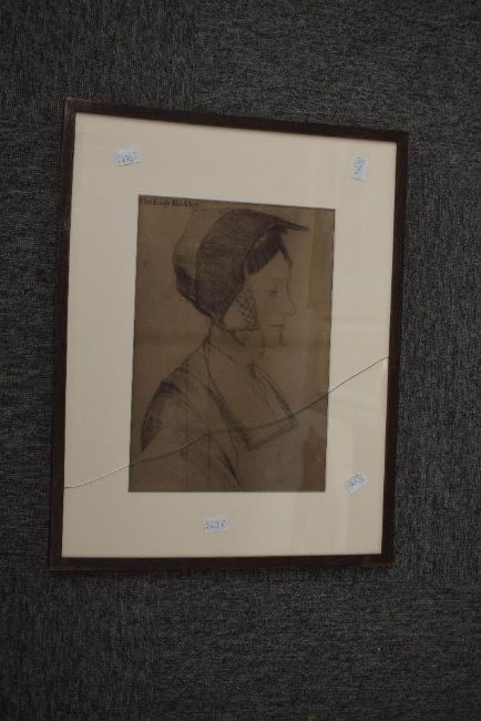 After Hans Holbein the Younger (German 1497 - 1543) and Frederick Hollyer (British 1838 - 1933) A collection of four Platinotype prints, each print a part of the 'Windsor Castle Collection' including 'Cecily More' 'The Lady Barkley' 'Woman Wearing a White Headdress' and 'Portrait of an Unknown Lady', blind stamps to lower right of the first two, entitled and attributed with Hollyer's artist biography verso, within card mounts and flat wooden frames, under glass 33cm x 22.5cm & 51cm x 40cm overall.
